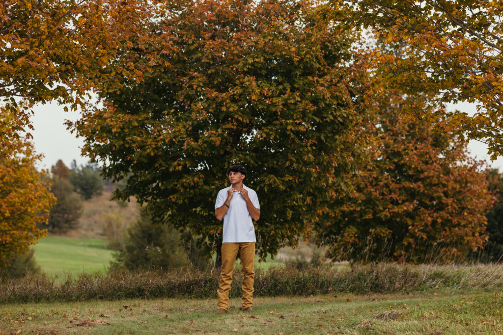We photographed Dawson’s senior session at Brenton Arboretum in Des Moines, and the fall color showed up. Golden leaves, soft light, and that calm, peaceful feel Brenton does so well — it was the perfect backdrop for a relaxed, easy-going session that felt very him.