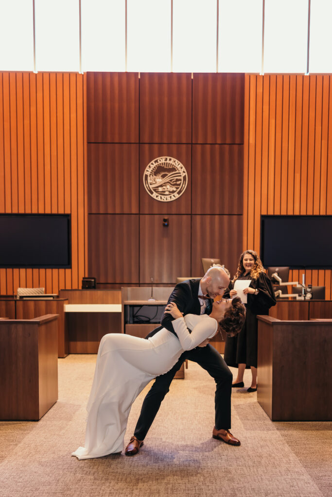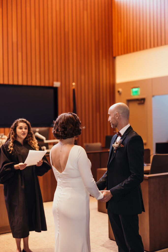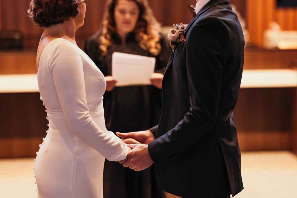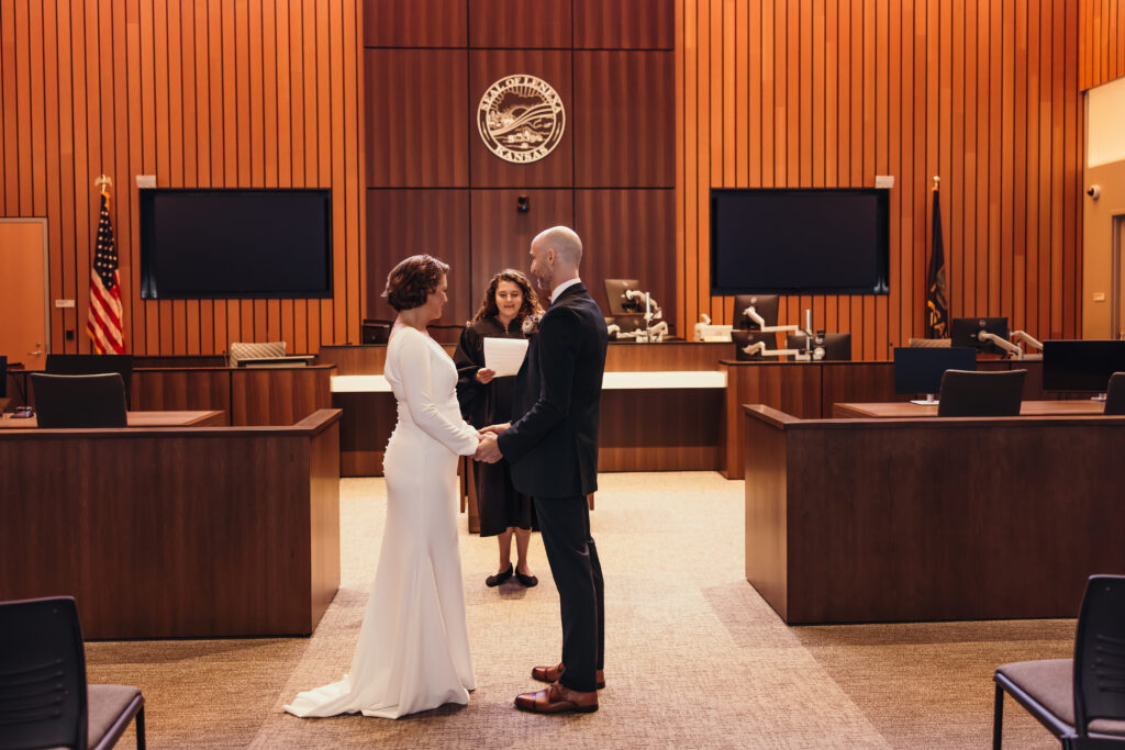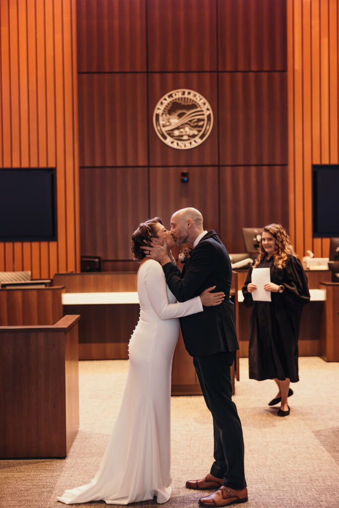 We started at the Lenexa City Municipal Court, where they officially became husband and wife. They were actually the first ever wedding in the new building, which made the moment feel even more special. Just the two of them, three witnesses, and myself (with Bridget along to assist!) — simple, sweet, and full of heart.