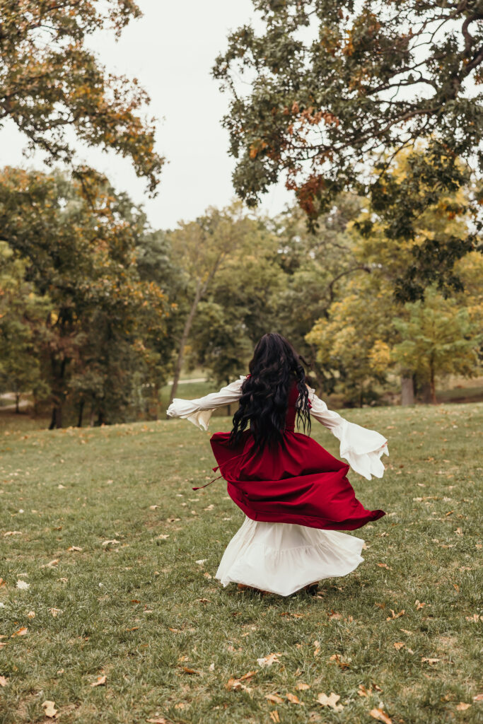 We wandered through Antioch Park in Kansas City, soaking in the changing leaves, the soft fall light, and her completely enchanting aesthetic. Her flowy dress moved like it had a personality of its own. Every twirl, every spin, every little laugh felt straight out of a fairytale scene. She embraced the moment beautifully — and trust me, that kind of energy shows up so well in photos.