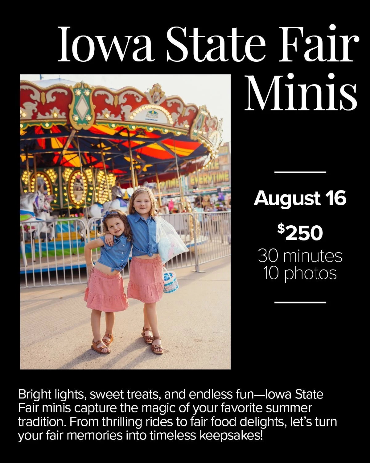Mini Sessions: Big Memories, No Hassle Fast, fun, and full of heart—my mini sessions are pre-planned, perfectly timed, and packed with creativity. Quick and easy? Yes. Boring? Never. These sessions deliver bold, beautiful moments without the fuss. Want something custom? I’ve got you. If my dates don’t fit your vibe, let’s craft a session that […]