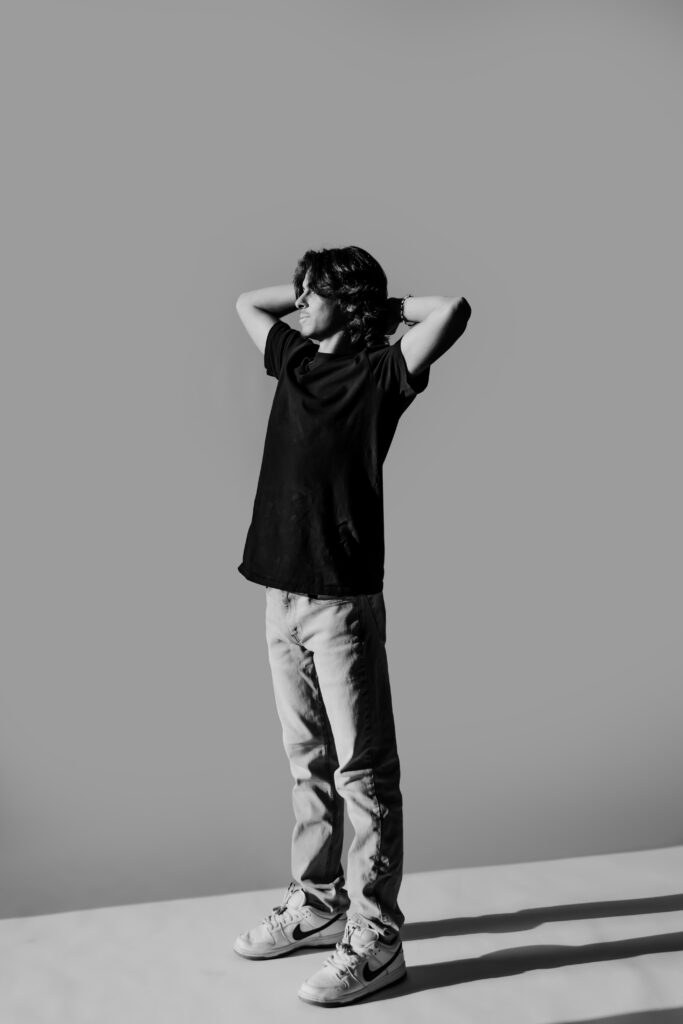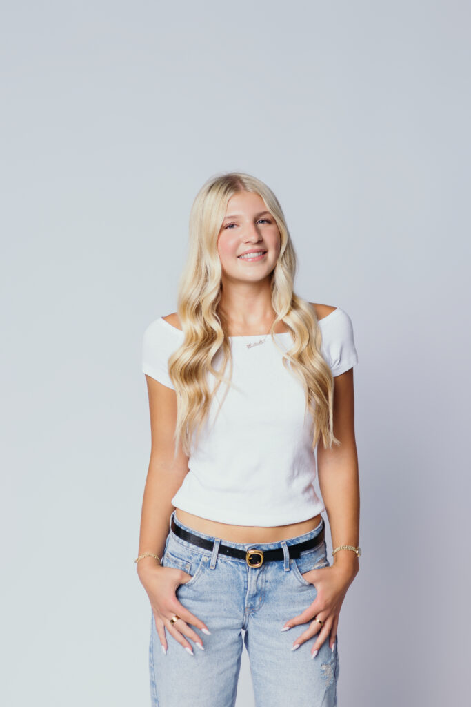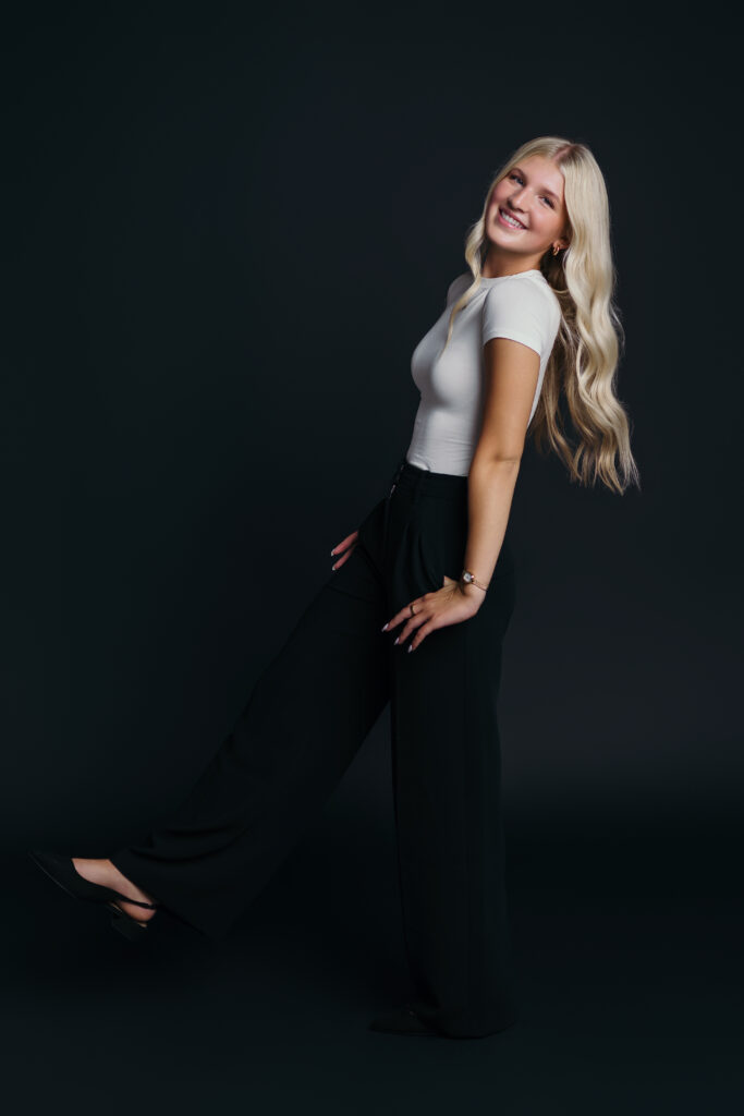 Studio lighting lets me shape shadows and highlights in a way that feels editorial and intentional. It gives your senior session a polished, almost magazine-style edge — while still keeping it personal.